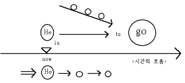 'is'는 현재의 그의 시간상의 위치를 나타내고 시간의 흐름에 따라 'to'는 'go의 행위'로 'He'가 접근하고 있는 상황임을 표시하고 있다.